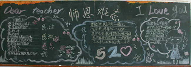 各班积极行动,利用课余时间精心准备,围绕“感念师恩”主题。绘制了一幅幅主题鲜明、图文并茂的黑板报,有对老师的点燃自己照亮学生的红烛的赞歌,有对老师春蚕般的赞美诗句……,学生们用诗歌、散文和绘画把老师比喻成园丁、蜡烛等。在教师节这个特别的日子,充分表达师生间浓浓的情谊。