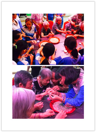 在同学们给老人们献上亲手画的画时,许多老人都被感动了,即使那些画并不是非常漂亮,但他们来自于同学们那颗真诚的心。即使节目并不是那么精彩,但老人还是很开心,他们需要的不是那独具匠心的画,也不是那的节目,他们需要的是孩子带来的欢乐。。。