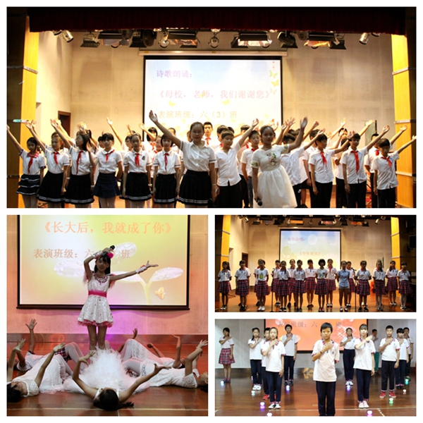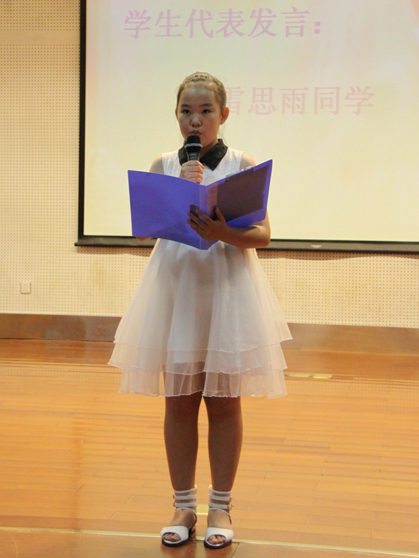 在一片感动和不舍的气氛里,教师代表肖慧兰老师为毕业典礼致辞,她衷心地祝贺同学们通过了六年的勤奋学习,获得了自信,学会了自尊、自立、自强,并向同学们送上了祝福与期望。她的话字字珠玑,句句忠恳,使同学们铭记于心。吴玉爱校长也对即将离开母校的同学们提出了几点希望:一、学会感恩,感恩老师,感恩父母,感恩世界。二、学会独立思考,逐渐告别保姆式教育。三、学会创新,因为只有创新,社会才有进步,个人才能成功。