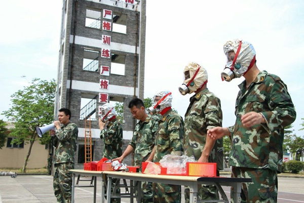 示范防毒面具的穿戴