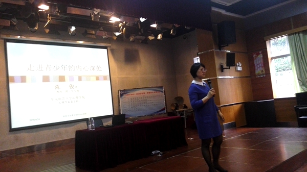 是日下午陈俊老师以《走进青少年的内心深处》这一专题与培训学员们进行了交流。陈老师详细地讲解了青少年成长中的生理、心理等发展特点,通过具体的实例解读了青少年发展时期的各种行为表现及矛盾冲突,并对如何解决冲突给出了一些具体策略,为老师们高效地与学生沟通提供了帮助。