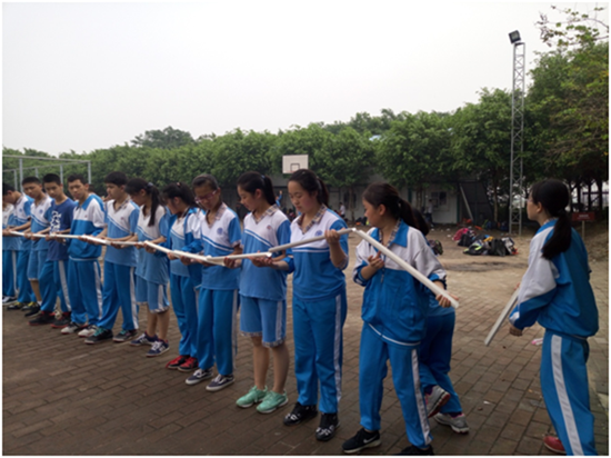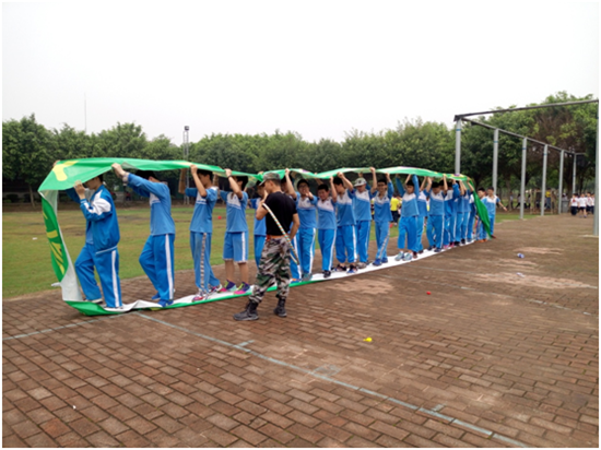 风火轮包括3个游戏。在第一个游戏中,学生整齐划一的在圆形横幅中行走。这需要同学们相互沟通,确保整个队伍步伐一致。通过这个游戏,学生们学会了有效的沟通和相互理解。在第二个游戏中,同学们在不借助手的力量下,将呼啦圈穿过身体,传递给下一个同学。虽然手不能发力,但同学们可以彼此帮助让呼啦圈顺利穿过每一个同学身体。最后一个游戏同样不能借助手的力量,而需要用脖子夹紧气球传递给下一个同学。