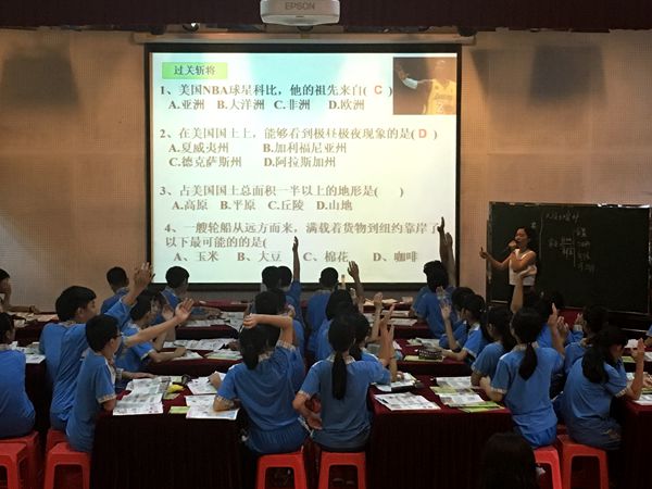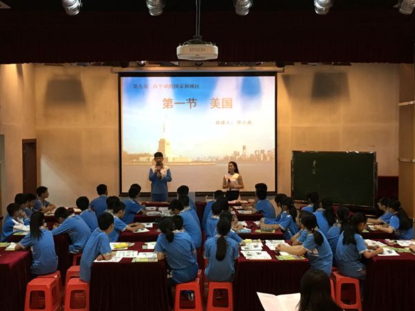 赛前,每位参赛老师潜心研读课本,精心备出教案、学案,以生为本,努力践行自主、合作、探究的新课程理念。邓小燕老师的《美国》地理课,以学生分享美国游学的经历做为新课导入,开篇便活跃了整个课堂气氛,吸引了在场老师和学生们的兴趣。整节课授课思路清晰明了,采用情境式教学,师生课堂互动热烈,使本届青年教师优质课比赛有了一个精彩的开头。