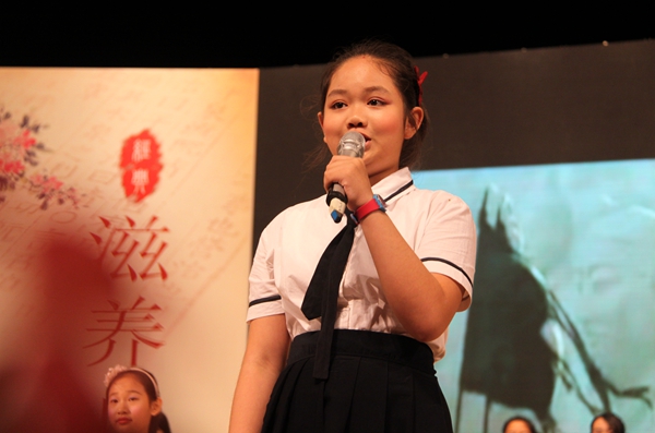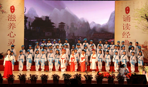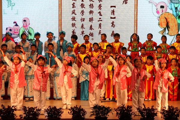 是日下午,整个云山会堂洋溢着浓浓的国学诗韵,朗朗上口的诵读声、阵阵热烈的掌声起伏回荡。同学们通过吟、诵、唱、舞等活泼新颖、特色鲜明的表演,诠释着国学经典作品的内涵;同学们的古诗诵读字正腔圆、有板有眼,优美的经典诗文,精彩的诵读表演,让全校学生的心灵感受到国学经典的熏陶和感染,接受了一次传统文化的洗礼,同时也弘扬了中华传统、彰显经典诗文魅力。