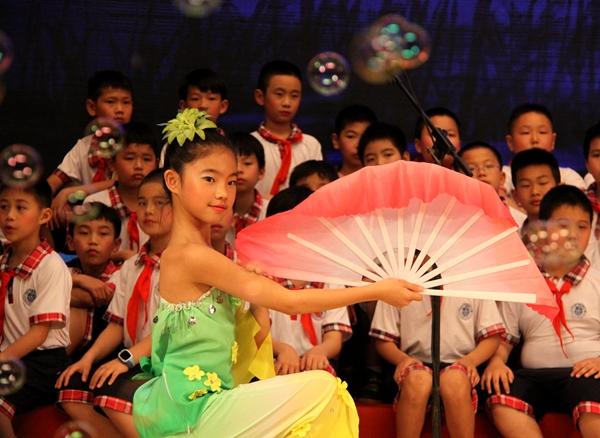 本次诵读经典活动,同学们的表演集诵、唱、舞、书、画等多种形式于一体,将文学与艺术进行揉合,多角度对古今经典进行演绎,弘扬民族文化。各班参赛同学用心灵来吟唱,真情演绎,节目效果绘声绘色、美不胜收。一年级3、4班的《三字经》,三年级2、3、4班的《诗词中的中国传统节日》,二年级5、6班的《说才学》,三年级1、5班的《中华好诗词》,四年级1、2班的《声律启蒙一东》展示了中华悠久文化的独特魅力;四年级3、4班的《春江花月夜》,一年级1、2班的《春天的秘密》向大家描绘了一幅幅春回大地、春和景明的秀丽篇章;二年级3、4班的《缅怀历史,励志兴邦》,五年级1班的《感悟杜甫》,二年级1、2班的《从军行》气势磅礴,让人充分感受到一代英雄忧国忧民的无尽情怀感情激奋;六年级1、2班的《中华少年》,六年级3、4的班《我骄傲,我是中国人》表达了孩子们身为中国人的自豪感与强烈的爱国热情;一年级5、6班的《古诗版小苹果》,让孩子们在活泼欢乐的氛围中体会古诗词文化,五年级3、4班的《最后一分钟》仿佛让大家翘首以盼曾经那个激动人心香港的时刻,五年2班的《我想》让大家幻想把他们的小手安在桃树上,把脚丫接在柳枝上,把眼睛装在风筝上。