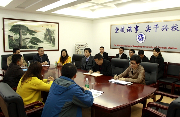 观看了学校宣传片后,吴玉爱校长代表学校介绍了学校活动促学校氛围,课改促理念转变,减负促高效课堂,特色促学校发展等情况,同时双方就校园文化、班级管理和德育工作等进行了交流。学生处主任、总务处主任、团委书记和中学年级组长等参加了交流。