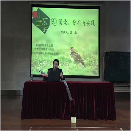 中国作家协会会员,广东文学院签约作家,朗诵协会会长王龙先生以《儿童文学的阅读、分析与实践》为主题为我校学生讲座