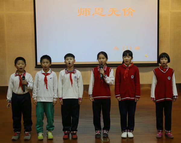接着,五年级的学生们用诗歌朗诵、演讲的形式表达了他们对学校和老师们的感恩。