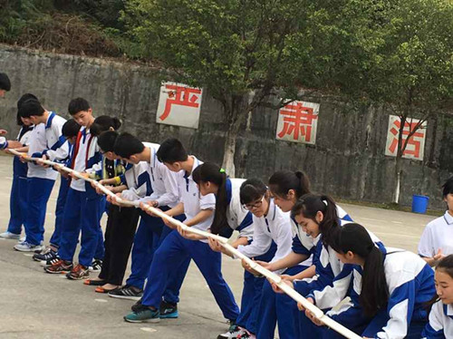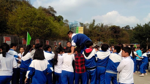此次誓师大会为期一天,以“安全、快乐、团队、动力”为训练目标,在穗华心国防教育基地十二位教官的带领下,全体初三学生分成十二个小分队,先后进行了增强团队凝聚力,树立目标意识的“罗马炮战”,收获成功就要抓好基础,做好细节,养成习惯的“南水北调”,“高空挑战”,其中最触动全体师生心弦的拓展项目便是“成功之路”。首先以班为单位,全体师生互相配合,搭建人桥,把全班体重最大的四名同学从起点送到终点。这项活动中,同学们说得最多的是“别放弃”、“别抱怨”、“加油”、“坚持”,每位同学都体会了成功的艰辛,明确了使命与责任,感受了团结和奋进的力量。接着,全体初三学生搭建人桥,把所有的老师从操场的这一头运送到那一头,泪水与汗水的交织,让全体初三级师生之间的情谊更浓,也让全体初三学子懂得感恩老师、父母和身边的每一个人,相信这项活动一定能够激发他们拼搏的勇气和信念,坚定人生梦想!