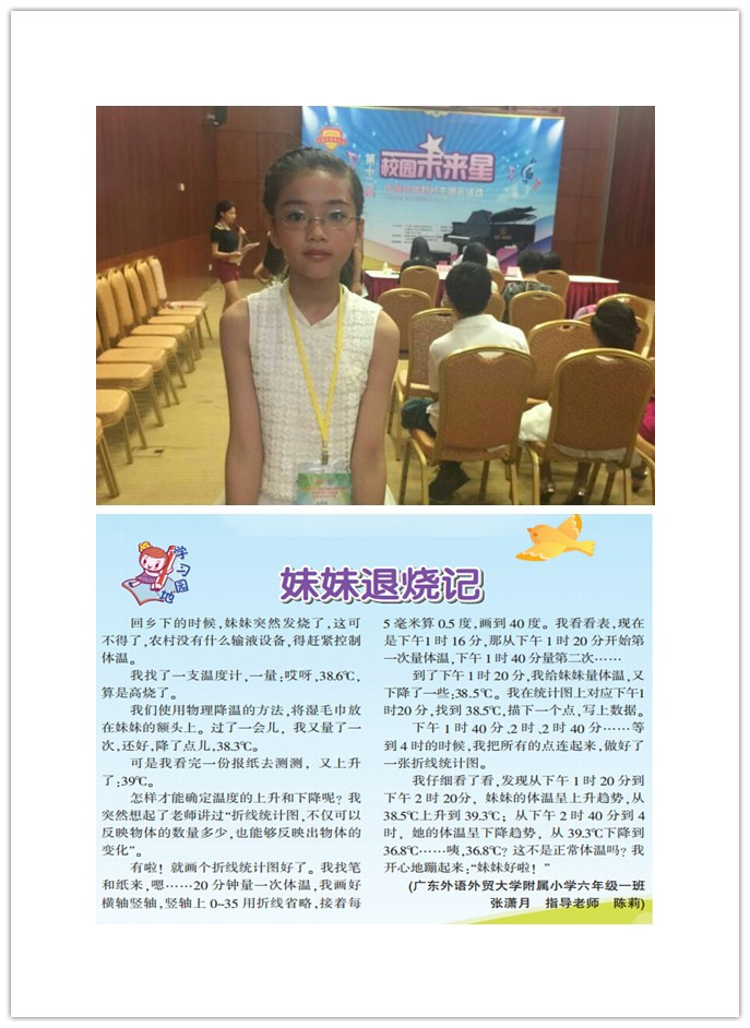 对着电脑,一遍又一遍地看着作业要求,突然眼睛一亮——“旅行”?今年回老家,妹妹发烧了,为了搞清楚她的体温,我还画了折线统计图呢。那就写这个啦!