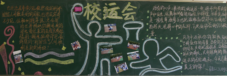 本网讯我校一年一度的运动会已经落下帷幕。为了弘扬学生个性及青春的活力,体现体育运动的精神。11月16日中学学生处开展以“精彩的运动会”为主题的黑板报评比活动。