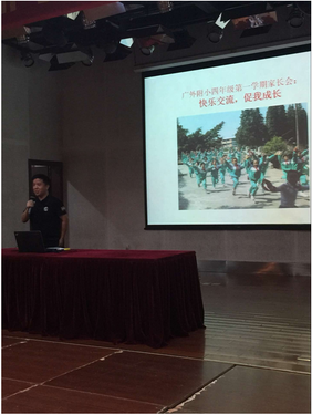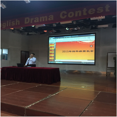 14:00家长们在云山会堂欢聚一堂。首先进行了年级集中家长会。年级级长李少林分享了自己的教育心得,汇报了这个学期来四年级组所开展的十项活动,展示了孩子们在校期间精彩的瞬间、快乐的笑颜。
