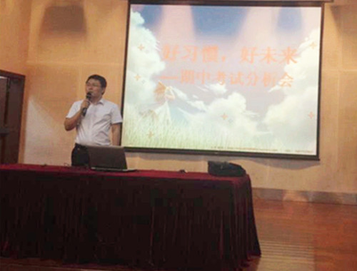 会上首先表彰了期中考试进步明显和成绩优秀、状态突出的同学,级长李红海老师分析了学生的优势和不足,提出了养成课堂良好学习习惯的方法和具体做法。