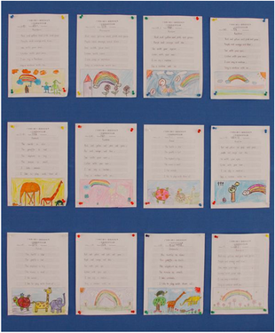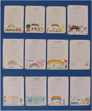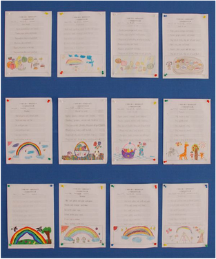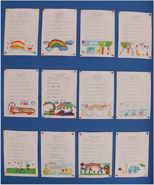 在本次比赛中,学生按要求选择规定的一首英语小诗,在年级统一印刷的比赛用纸上认真书写,并根据书写内容自由创作图画。此次活动得到了同学们的积极响应,二年级全体学生共同参与。比赛过程中,每一位学生都认真书写,积极创作,涌现出了很多书写规范、图画精美的优秀作品。