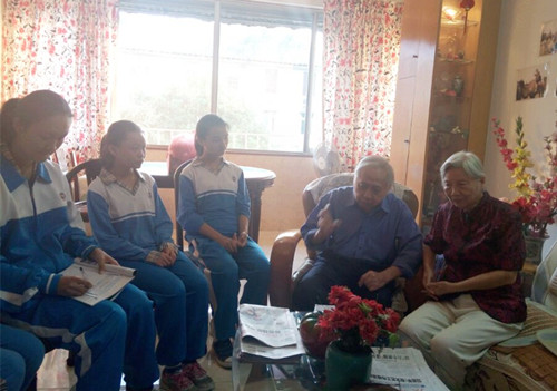 本网讯10月15日下午,广外附中师生一行九人在学生处主任林旭丽的带领下,拜访了广外大退休名教授伍谦光夫妇。