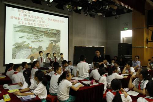 四年级李少林老师的语文课《夺马记》犹如串串珍珠,充满着语文的光亮和浓香。李老师的教学从学生自主交流课文人物和相关历史事件展开,通过扎扎实实的语言训练让学生走进人物,再通过句子“李光弼幼持节行,善骑射,能读班氏《汉书》”展开分析,学生自主理解,构建自己新的知识。
