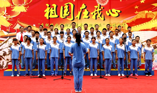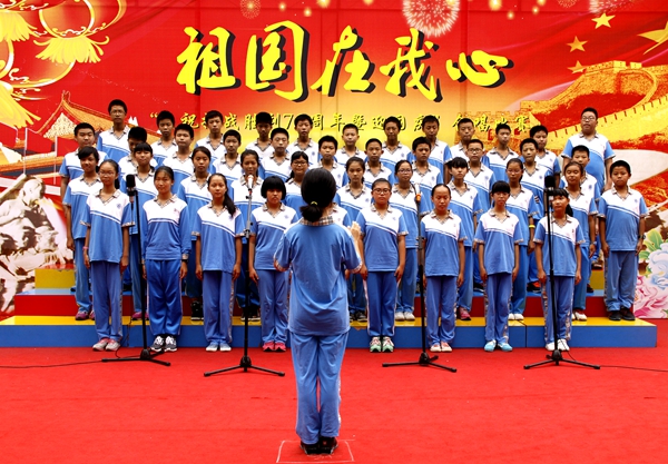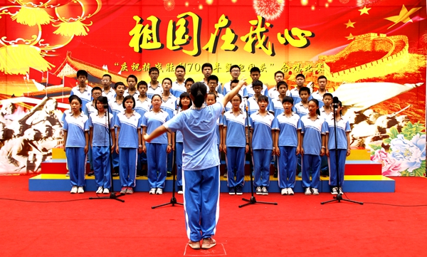 本网讯又是一年秋风送爽时,又是一轮花好月圆日。为庆祝抗战胜利70周年,迎接祖国66华诞,9月30日,我校中学举行“祖国在我心——庆祝抗战胜利70周年暨迎国庆”合唱比赛。悠扬曲调,飘逸舞姿,嘹亮歌声,掌声连连,唱响校园……祖国在我心!