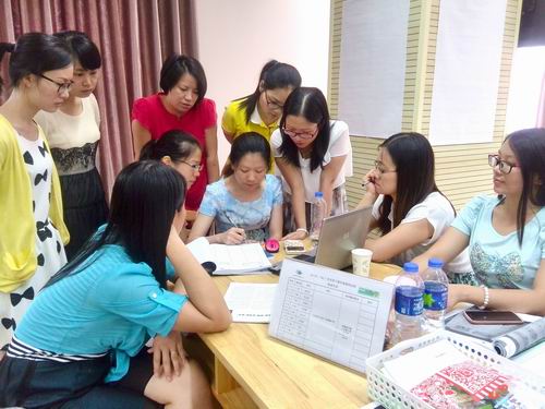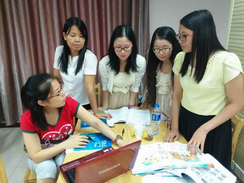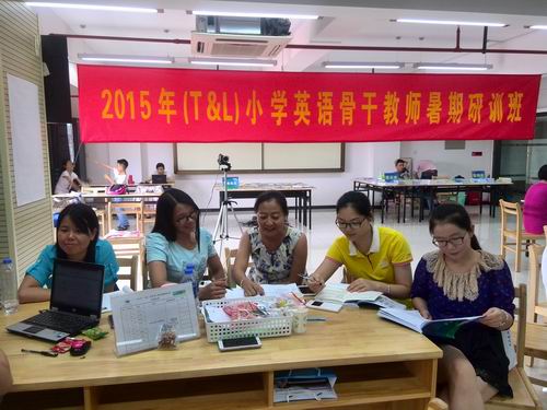 每天从早上8:15上课到下午5:30放学。白天听课晚上讨论完成作业,第二天展示,专家点评再次修改整理。五天的学习我们的思想在这里碰撞,我们倾听我们反思,我们困惑我们质疑,我们争论我们实践。大家都沉浸在思考和顿悟中。专家的精彩点播颠覆了我们以往的教学,先进的教育理念一度让我们迷茫。在五天的反复思索和探究中我们艰难的前行。我们不断的争辩、研论、分工合作实践证实。最后我们还以海报的形式展示本次的收获、感想和困惑。这是充实的五天,是痛苦的五天。我们勇敢面对,在理论与实践的反复探究中,在朱蒲老师入木三分剖析的下我们终于豁然开朗。
