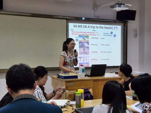 各位专家巧妙的运用生活例子深入浅出,引导老师们逐步理解英语教学的核心思想。首先要对教学整体目标有全面、客观的认识,教学目标的设置要关注情感态度、学习策略、语言技能、语言知识、文化意识五个方面缺一不可。教学活动要紧紧围绕着中心目标,为教学核心目标服务。其次做到教学的关注点由知识点上升到教材编排、整体内容的教学。倡导教师要根据教学目标、学情整合、调整和补充教学内容,做到活用教材。最后开展以语境、语篇为主体带动词、句学习的体验式教学方式。
