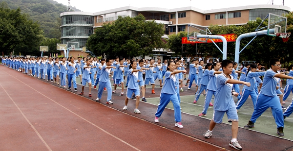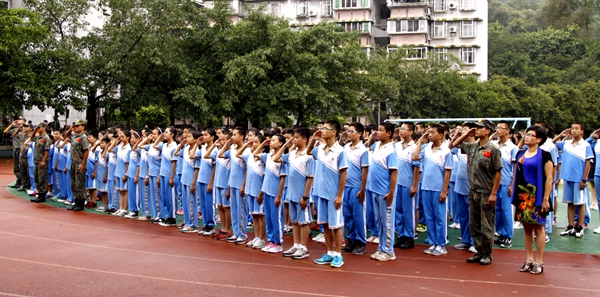 随后,吴玉爱校长发表了热情洋溢的致辞。他代表学校对230多名小一新生、170多名初一新生和30多名插班生的入学表示欢迎,同时也对此次军训学生取得的良好表现提出表扬。他在发言中说道:“心存感激是学会做人的基本条件,我们要感激父母抚育之恩、老师们的辛勤教育、感激这个时代给我们递来的丰富与精彩……”吴玉爱对全体学生提出要求,从点点滴滴做起,一步一个脚印,尽心地去做好自己的每一件事,每一个人都有所成就。