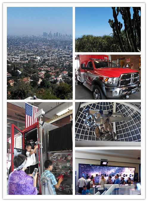 洛杉矶市貌;洛杉矶消防局里的消防车,笔者和家长很满意这种开放式的参观;