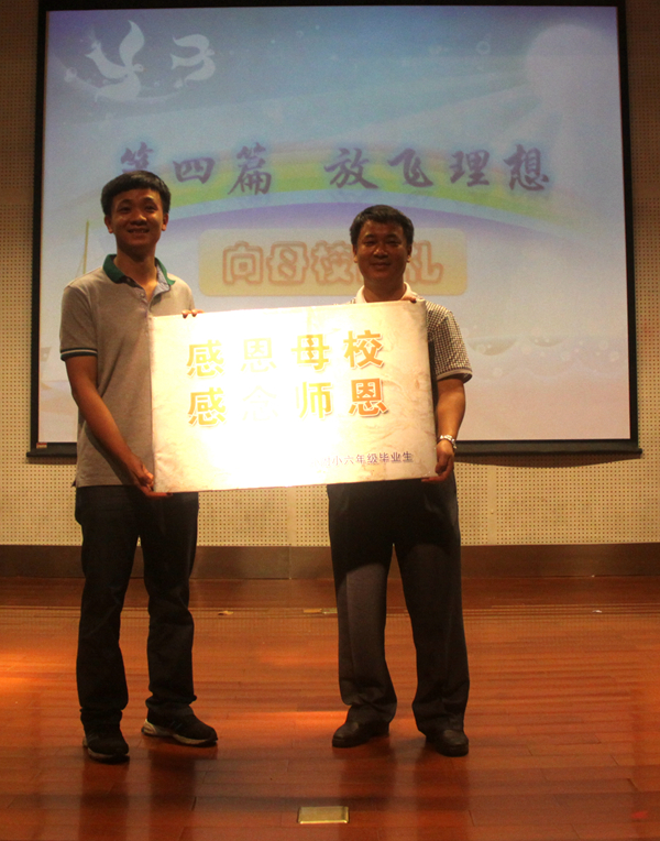 老师代表全体毕业生向学校献礼牌匾