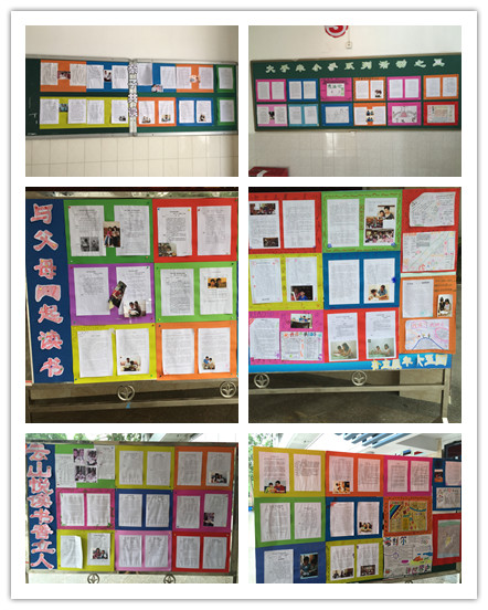 5月下旬,每班选出几篇家长的作品附上孩子的共读收获以及共读照片,以家庭为单位分别贴在卡纸上,集中在学校展示。下一步我们还将选出家长代表在年级家长会上现场交流“亲子共读”的收获。