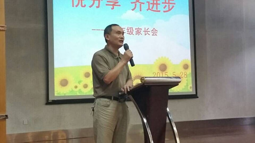 吴校长以“忙碌”的话题引入,重点谈到如何改进办学条件、调整和修正办学理念及方向、改变管理模式,强调在学校工作中抓好质量是根基,要求教师向课堂要质量,同时营造一个生动活泼的课堂;强调办学特色是高度,详细地向家长们介绍本校的育人特色、外语特色、艺体特色。最后吴校向家长提出培养学生应具备的三种素养,即宽阔的视野、创新精神、终身学习和思考的能力,同时建议家长:1、保持良好的心态,不要盲从,相信自己;2、给孩子一个温馨的家庭环境;3、培养孩子好习惯,从自己做好。吴校长的演讲条理性强、诙谐幽默,博得在场家长们热烈的掌声。