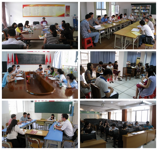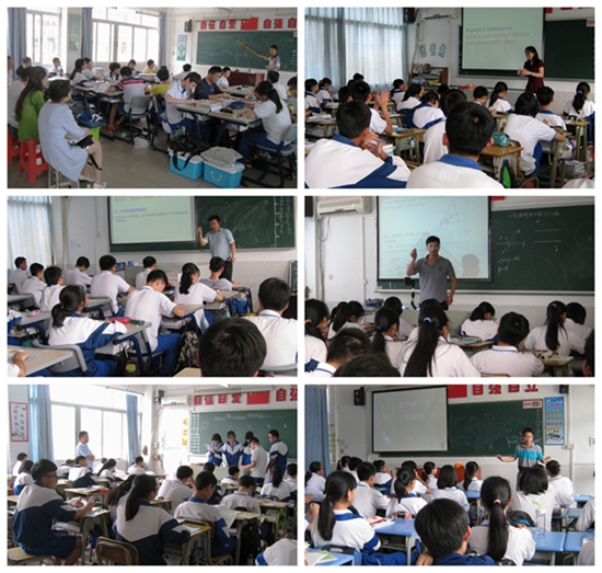 本次活动分为三个议程:首先是本校6名初三教师向来宾展示示范课。展示课程的教师分别是:徐胜华(语文)、薛峰(数学)、王红梅(英语)、张永强(政治)、何正枢(物理)、李红海(化学);接着是各学科分组评课及各校复习备考策略交流;最后是区各学科教研员反馈意见及本校领导讲话。