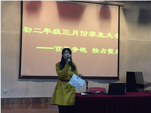 本网讯4月10日下午,中学部初二年级三月份学生大会在礼堂如期举行。