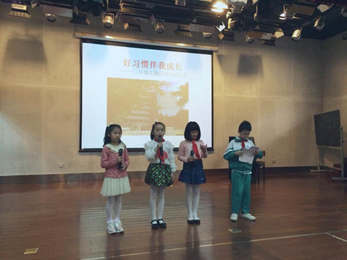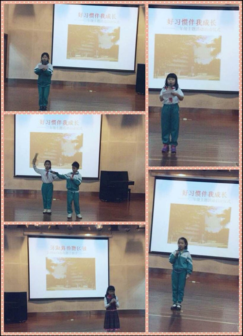 在活动过程中,三年级的数位小朋友以精彩的演出为本次活动增添了许多光彩,“文明礼仪歌”的快板演唱,有关于好习惯的名人故事等等都深深地吸引了同学们的眼球。