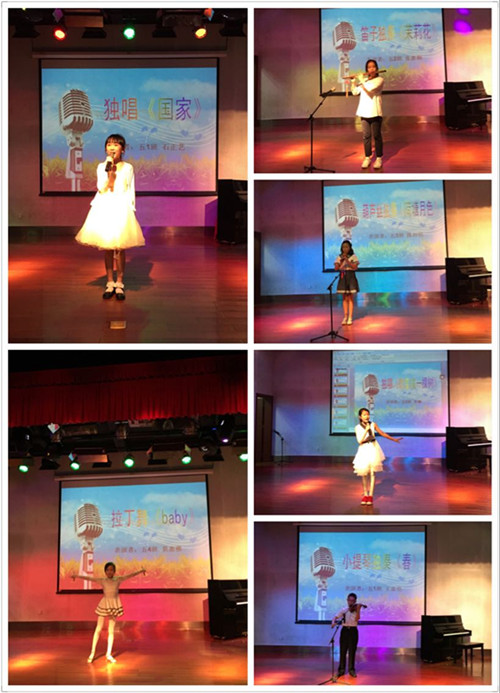 本场比赛以石正艺同学一曲《国家》拉开帷幕;接下来的乐器独奏《茉莉花》、《荷塘月色》、《春》仿佛让我们跟随音乐置身其中;莫慧雅、汤梓琪等同学灵动、热情的的舞蹈也让人看的如痴如醉;最后邱志哲、龚成、段佳欣等同学更是用自己动人的歌声、自信的神态给大家带来了一个又一个的惊喜,赢得了老师、同学们阵阵热烈的掌声。