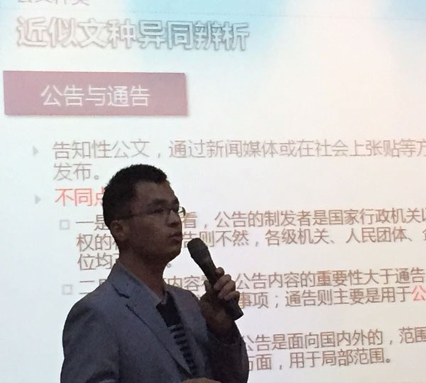 培训会上,刘郎以其丰富的实践经验和幽默风趣的语言,结合实际案例,对使用起来容易发生混淆的公文文种进行了分析,对公文的写作格式和适用范围进行了详细介绍,对公文处理中的难点问题和常见病误进行了重点讲解。