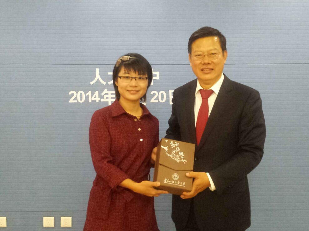 陈副校长向人大附中校长翟小宁赠送纪念品