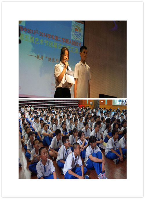 本网讯6月6日,我校礼堂内欢声阵阵,笑声连连,这是初中部在举行“我是快乐阳光——入团宣誓仪式暨第五届艺术节闭幕式文艺汇演”。