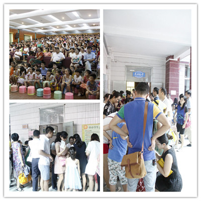 小一新生家长排队领取赠书
