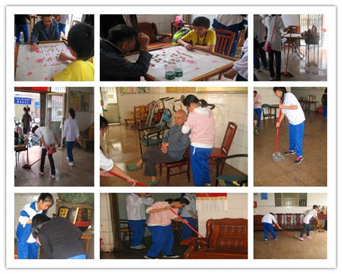 在人口老龄化形势十分严峻的今天,同学们利用自己有限的课余时间,来到活动中心给老人送上水果、同老人家聊天、下棋、打扫卫生、整理房间等方式,诠释着敬老爱老的社会传统美德。
