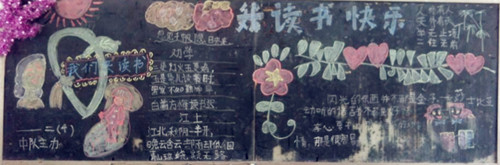 本网讯在鲜花竞相绽放的三月,我校又迎来了“第六届校园读书节”。为了激发同学们的读书热情,营造勤奋读书、努力学习、奋发向上的校园文化环境,学校少先队开展了以“读书节”为主题的黑板报评比活动。