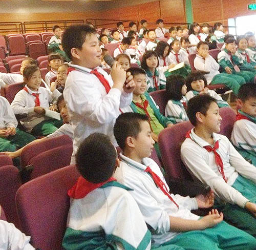 本网讯3月19日下午,肖慧兰老师在校礼堂给四年级全体同学举行了一场别开生面的《父与子》导读交流会。