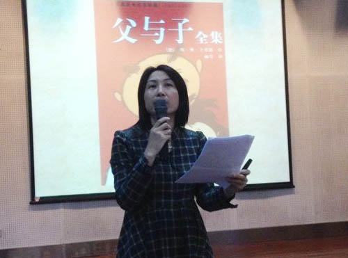 说起《父与子》,不只是学生,就是他们的父母辈也不会觉得陌生,应该还会是其中很多人的第一本漫画书呢。交流会开始,肖老师让孩子们回忆了父亲留给自己的最深印象,又简单地介绍了作者本人及《父与子》内容概要。接着,屏幕上出现了几幅与学生的生活较为接近的漫画让他们欣赏。作品中的儿子调皮、睿智,父亲慈爱、孩子气十足,情节幽默风趣,温馨有爱,饱含哲理,令人久久回味。现场,大家发言积极,观点独到……短短的40分钟交流会在热烈的氛围中结束了,带给同学们的是深深的感触和浓浓的期盼。