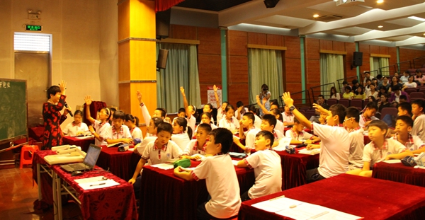 本网讯为了更好地促进教师专业发展,提升教师的教育教学水平,打造精品课堂,10月14日,我校在云山礼堂开展了“名师示范课”教学研讨活动。范秀红老师与六一班全体学生为大家呈上了一堂生动精彩的名师示范课。参与本次活动的有吴校长,袁副校长与全体教师。