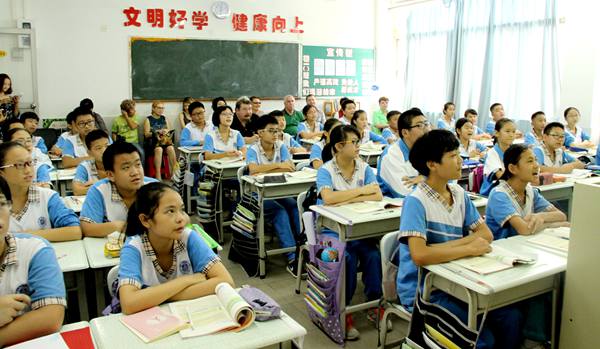 俄罗斯新西伯利亚中学校长团一行于初一四班听课