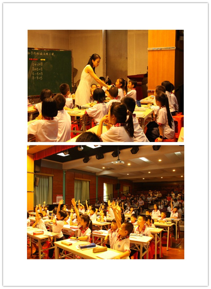 本网讯 10月26日上午,新市片数学教研组在我校举行了以“教育从培养习惯开始”的主题教研活动,广外附小孙伟老师带领一年级学生上了一节“8、9的加减法练习课”,孙伟老师巧妙的将故事、游戏等项目融入教学中,使孩子们既收获了知识,又收获了快乐。入学不到两个月的孩子们课堂上训练有素的精彩表现和上课教师扎实的教学基本功得到了领导和老师们的点赞。