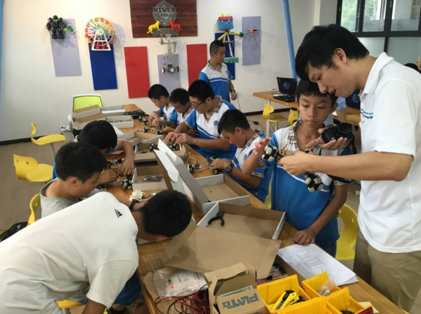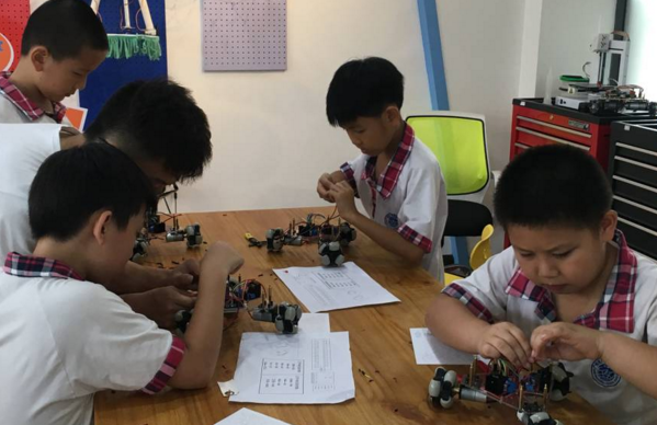 同学们一步一步让零散的器材变成酷炫的小车