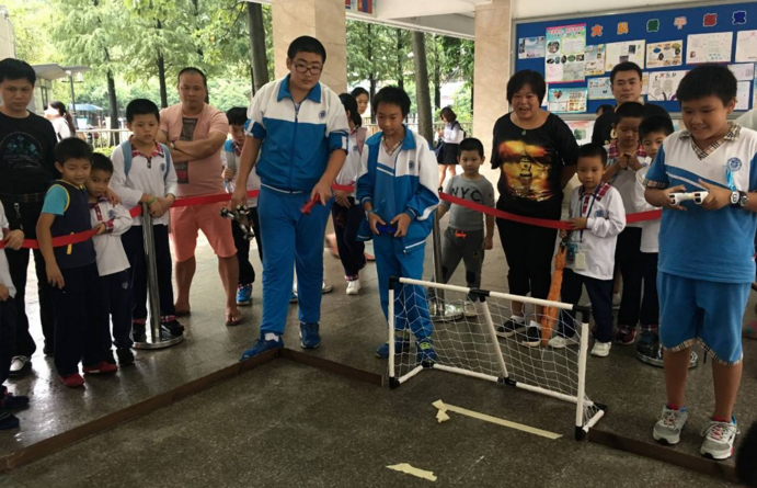 由林煜东、李炫彬、肖浩然、邱嘉毅组成的“队名队”和由郑博函、王吉天、陈韦屹组成的Revolution队之间的较量十分精彩。比赛中“队名队”处于领先状态,然而Revolution队在比赛结束前30秒追平比分,进入加时赛,赢得现场观众的连连欢呼。加时赛中,“队名队”率先取得进球并保持一球的微弱优势以5:4的比分取得胜利。恭喜“队名队”的四位同学,同时,Revolution队的团队合作也值得大家学习。同学们都很棒。