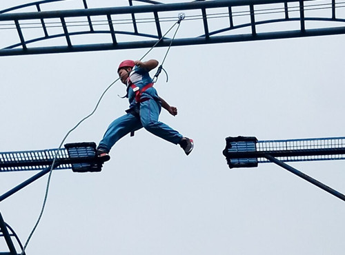 活动首先对学生进行了有针对性的心态培训、方法指导。活动中,培训中心的教官们指导全体学生分成八个小分队,组织学生先后进行了“高空挑战”、“大脚板”、“南水北调”、 “乌鸦和乌龟”、“鼓动人心”、“户外烧烤”等六个项目。学生们在活动中表现积极活跃、主动活泼、严谨有序。