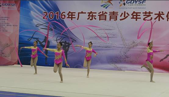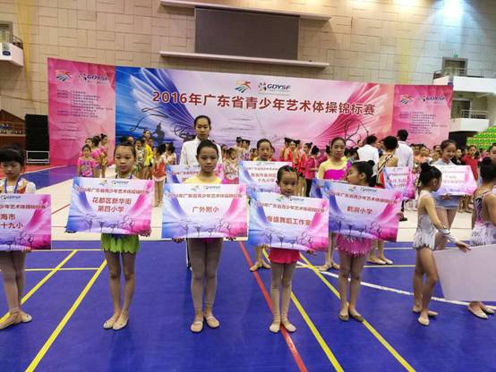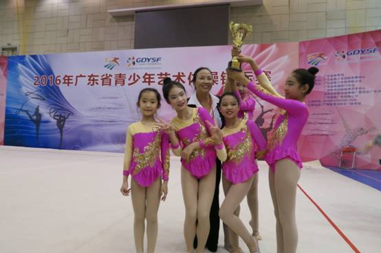 本网讯 2016年12月25日,为期两天的“2016年广东省青少年艺术体操锦标赛”落下帷幕,师小蕴带领的广外附小体操队崭获普通推广套路轻器械小学组的第三名。该赛事是广东省艺术体操项目的最高赛事,来自全省各地的56支代表队,近600名运动员参加了比赛。