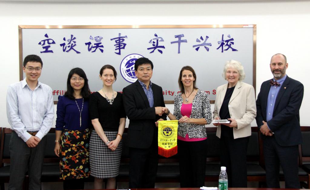 吴玉爱校长就我校的国际化的办学目标及外语特色的教学模式向来宾作了详细介绍,近年来,随着我校办学规模的不断扩大,许多国家的知名院校都已与我校建立友好关系。会谈中,Bette Lang表示她很期待两校能够有更深层次的文化方面的交流,积极发挥中美文化教育的纽带作用。