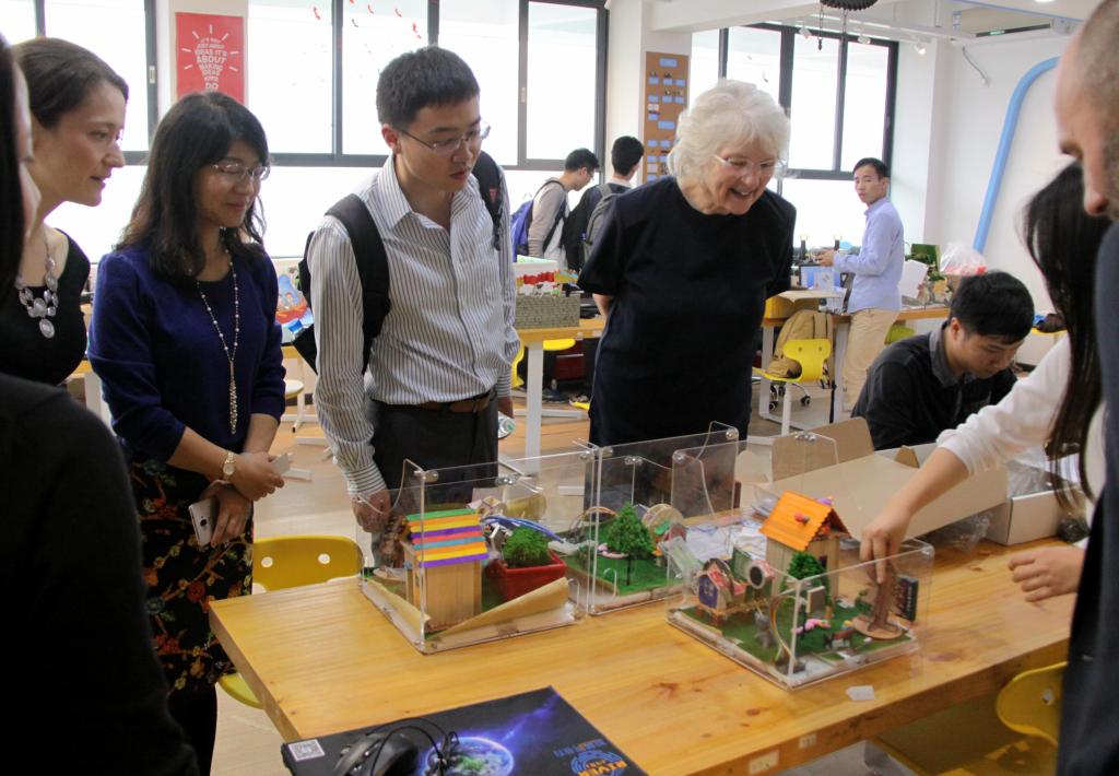 随后,在陈媛媛副校长的陪同下,他们参观了我校艺体功能室,机器人科技室等教育教学环境,来宾纷纷惊叹我校的校园文化布置的精细与内涵的丰富,处处蕴含着教育国际化的元素。