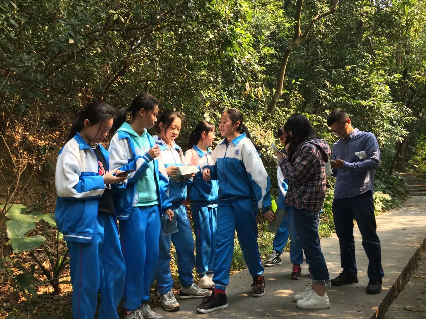 语文科组织初一(2)班和初一(4)班的学生进行“寻找白云山的诗意”为主题的实践活动,每一小组在自然景区随意拍摄照片,寻找景区中最具有诗意的画面和瞬间,并用文字记录这诗情画意。随后的飞花令环节,更是让学生们投入其中,气氛热烈,学生的语文素养也得到了很好的熏陶。